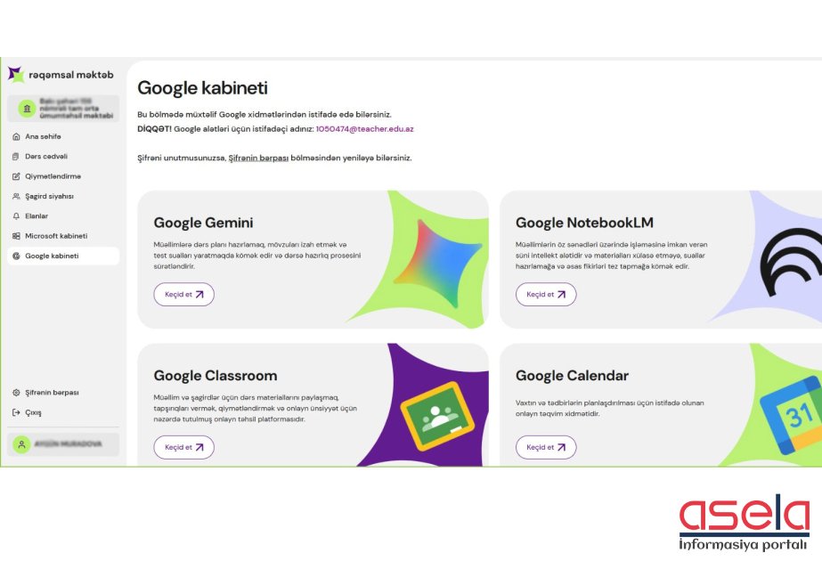 İnteqrasiya olunan alətlər arasında xüsusi yer tutan “Gemini” və “NotebookLM” müəllimlər üçün praktik və gündəlik istifadə üçün imkanlar təqdim edir.