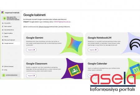 Nazirlikdən bildirilib ki, “Rəqəmsal məktəb”də qeydiyyatdan keçmiş müəllimlər “Google” platformasının geniş alətlər toplusuna, o cümlədən süni intellekt vasitəsilə həllərə ödənişsiz çıxış əldə edirlər. Yaradılmış imkanlar müəllimlərin gündəlik işini daha səmərəli təşkil etməyə və tədris prosesini zənginləşdirməyə kömək göstərir.