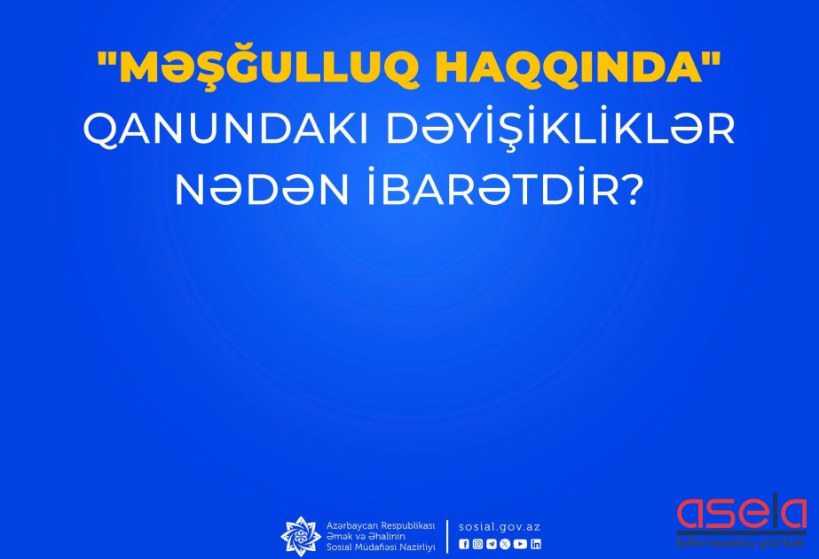 Prezident İlham Əliyevin imzaladığı Qanunla “Məşğulluq haqqında” Qanuna bir sıra dəyişikliklər edilib.