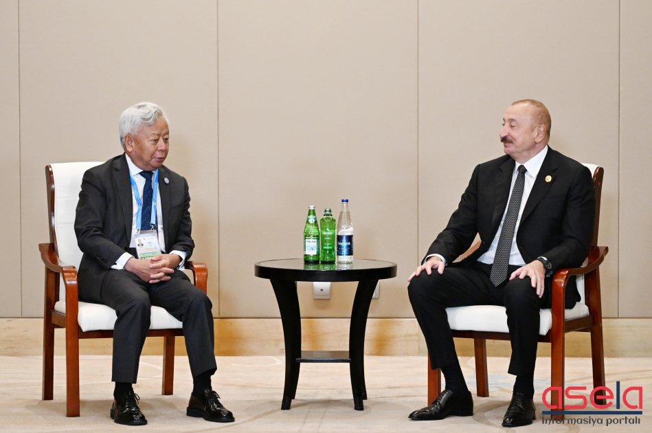 Azərbaycan Respublikasının Prezidenti İlham Əliyev sentyabrın 1-də Çinin Tiencin şəhərində Asiya İnfrastruktur İnvestisiya Bankının prezidenti Cin Liqun ilə görüşüb.