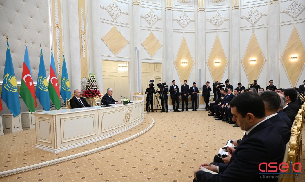 Azərbaycan və Qazaxıstan prezidentləri mətbuata bəyanatlarla çıxış ediblər